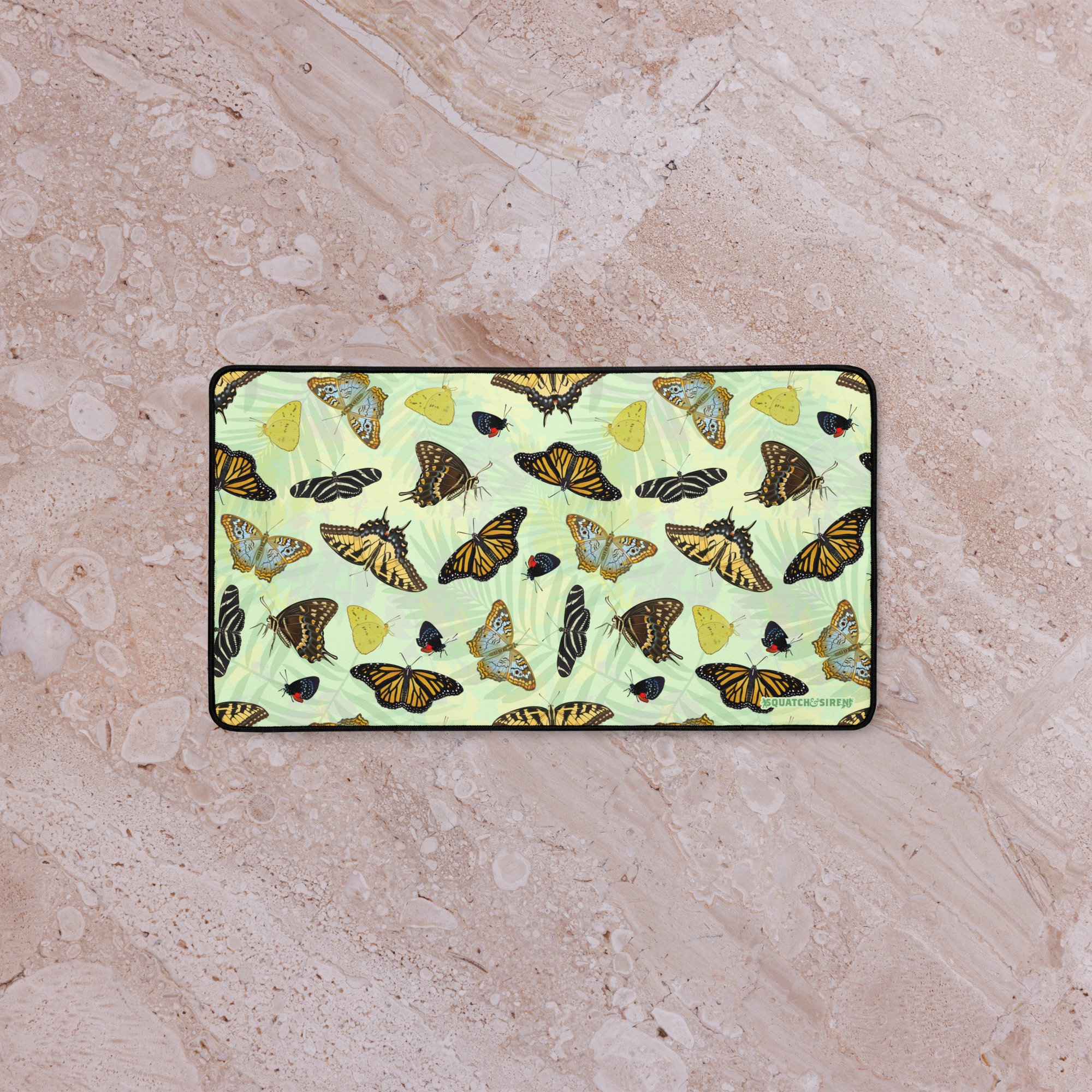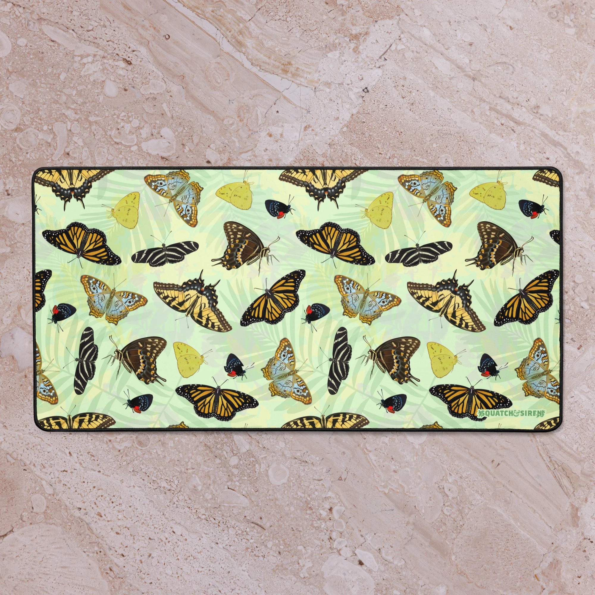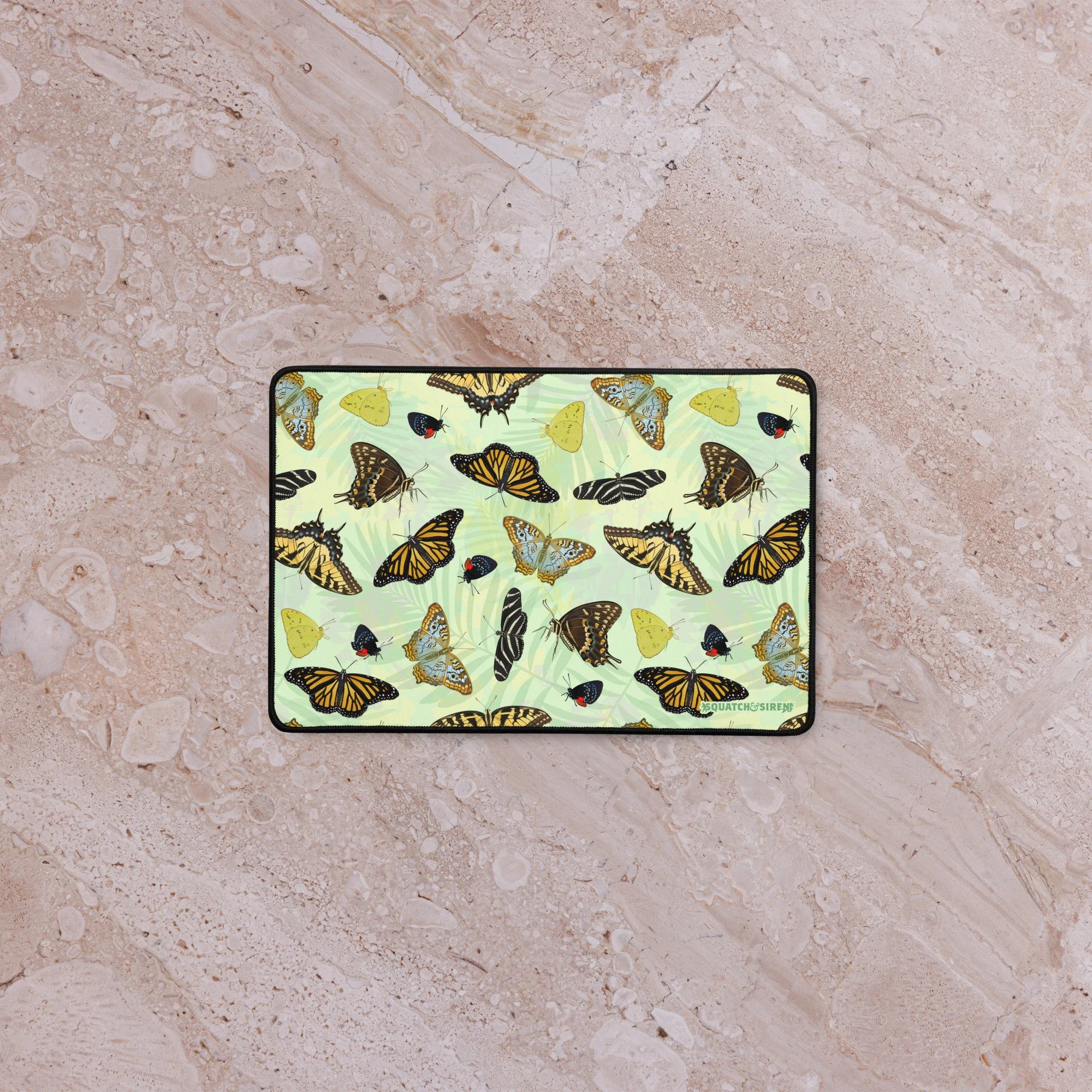 You won't know if you are in your office or garden with this desk mat full of butterflies! This hand drawn print features 7 of our favorite Florida Butterflies: The Atala, The Zebra Longwing, The White Peacock, The Palomedes Swallowtail, The Tiger Swallowtail, The Cloudless Sulphur, and of course the Monarch!